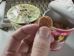 - そしてにしかたは今日もぽりぽりやりながら、背筋を気にするわけであります(笑)。ただねえこのカップ、ちょっと1食分には多いんで、つまみながらどーも半分くらいで食べるの止まってしまいます。そーするとだなぁこの季節なんで、しけっちゃうんですよね。これが玉にキズ。